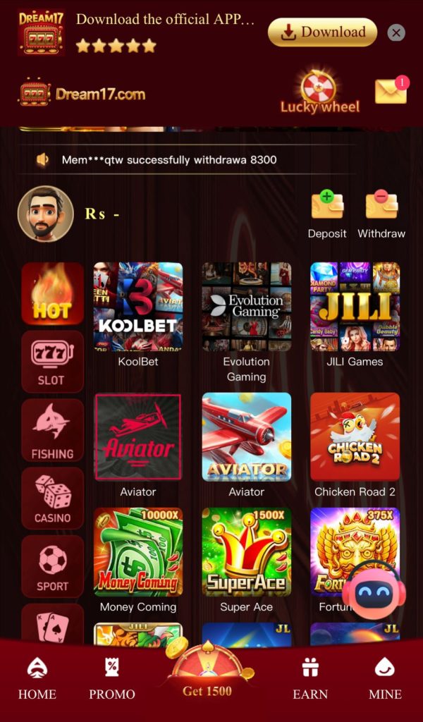 | Game Type | Slots, Cards, Fishing, Lucky Draw |