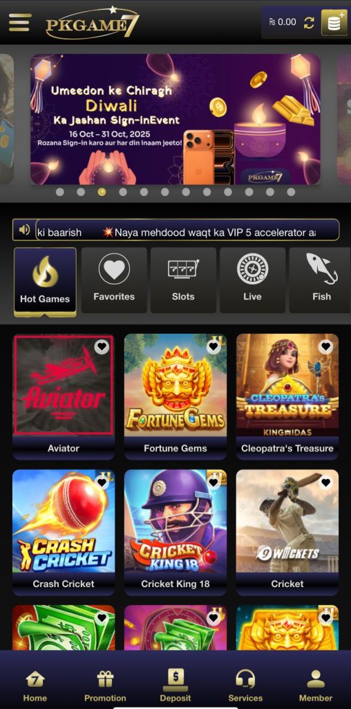 You can download PK Game7 on your Android phone and start playing within minutes. The best part is that it supports Easypaisa and JazzCash for deposits and withdrawals, which makes it very convenient for Pakistani players.