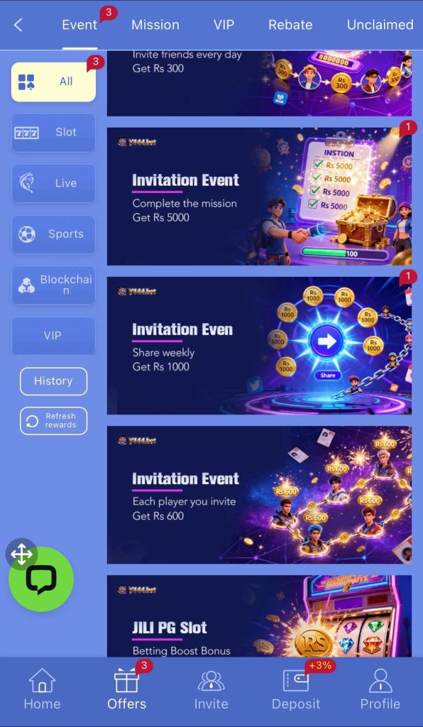 y444 constantly rewards active players with login bonuses, spins, and cashback offers.